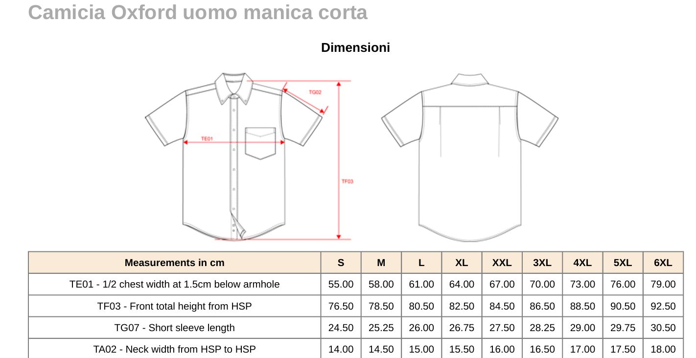 Taglie: S, M, L, XL, XXL, 3XL, 4XL, 5XL, 6XL